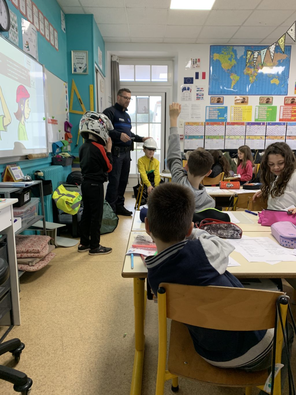 Le policier municipal est intervenu auprès des classes de CE et de CM dans le cadre du dispositif « Savoir rouler à vélo ». Les élèves de CE ont travaillé le Bloc 1. Cette séance a permis de sensibiliser les enfants aux équipements obligatoires du vélo, à l’importance d’un casque correctement ajusté ainsi qu’aux gestes…
