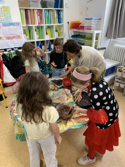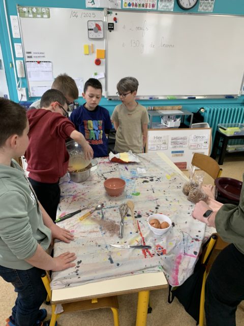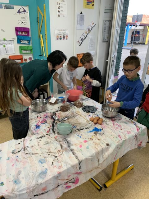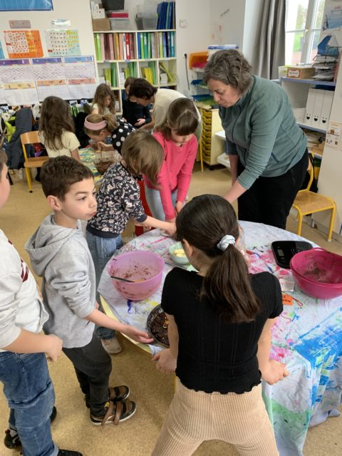 Pour clore la journée, nous avons dégusté les 100 parts de gâteau au chocolat que les CE1/CE2 avaient cuisinées plus tôt dans la matinée avec des mamans. Merci à elles !