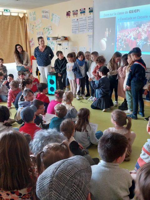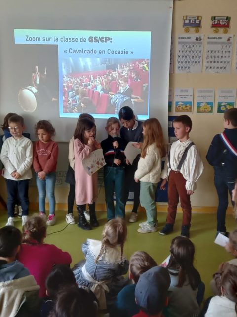 Comme c’était aussi le dernier jour avant les vacances, toute l’école a également participé à l’Assemblée d’élèves, animée par les délégués. En plus de présenter les temps forts de chaque classe et de fêter les anniversaires, chacun à pu présenter son costume ou sa réalisation.