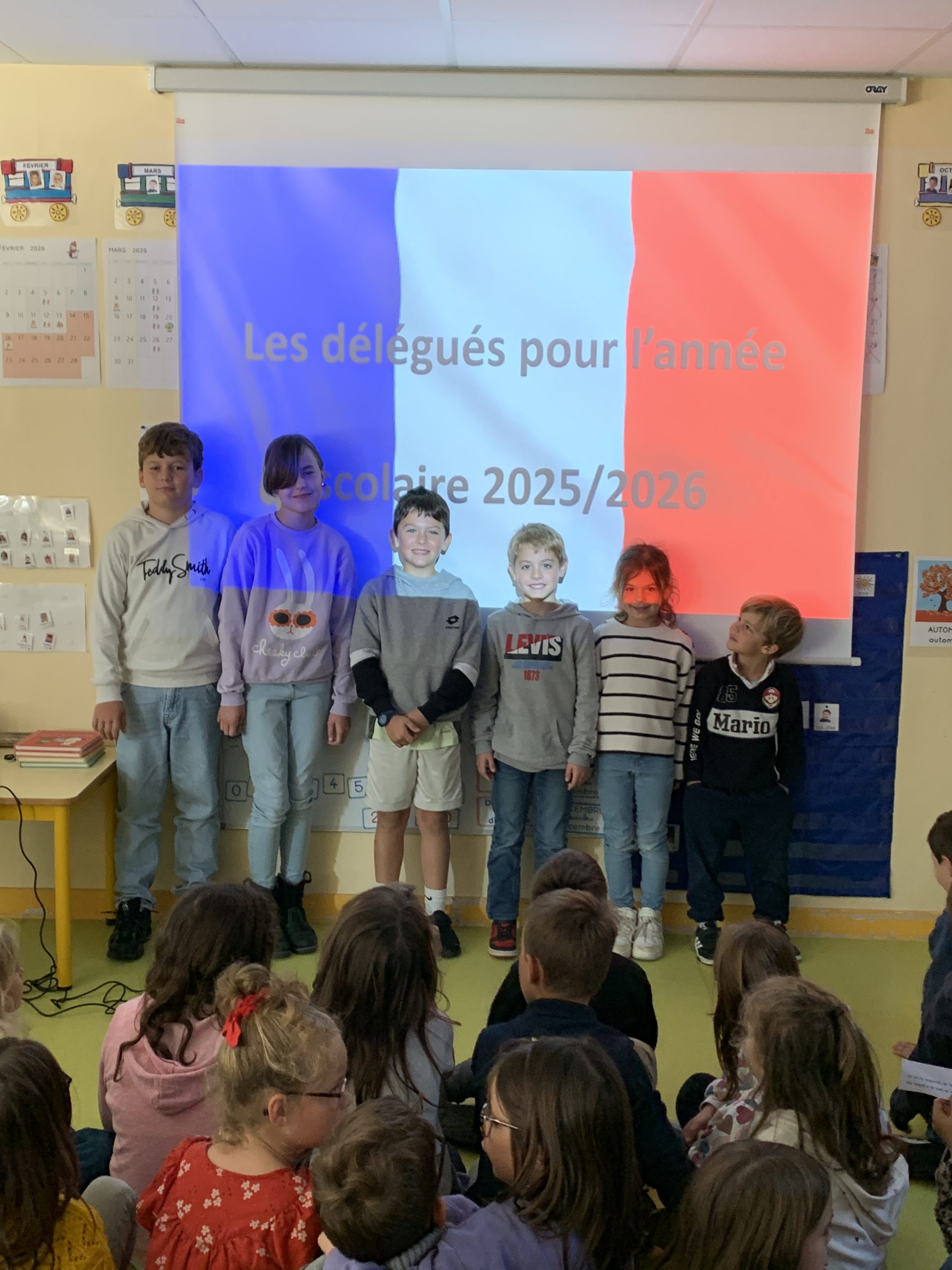 Ce moment convivial a permis à chacun de découvrir les délégués pour l’année 2025-2026 : Maylone pour les GS, Éléna pour les CP, Maëlan pour les CE1, Tom pour les CE2, Julia pour les CM1 et Baptiste pour les CM2. Félicitations à eux pour leur engagement !