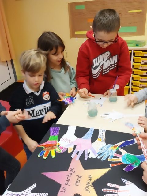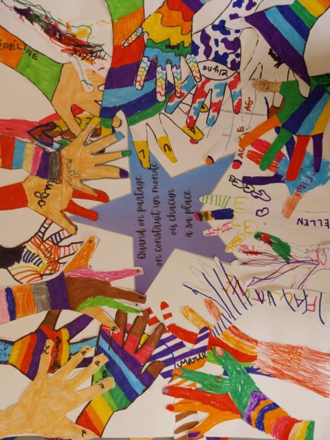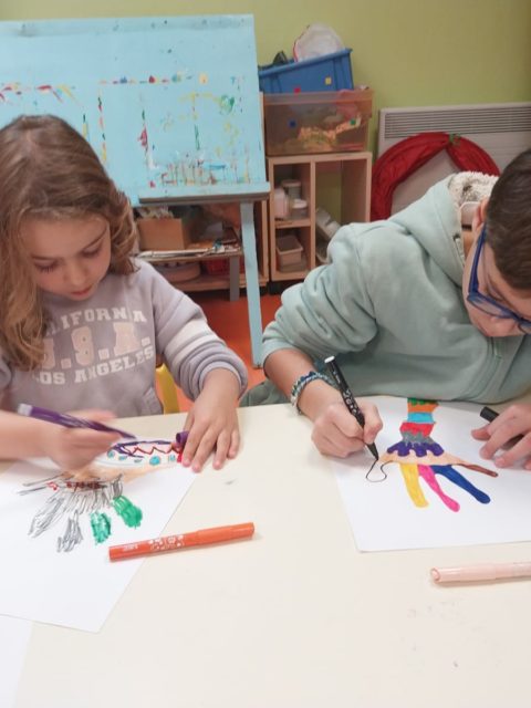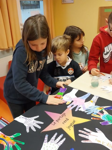 – Un atelier d’arts visuels, durant lequel les enfants ont réalisé une fresque collective de mains décorées, symbole de partage et de bienveillance ;