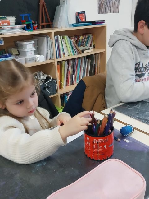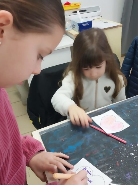 Un atelier d’arts visuels a exploré quatre émotions : la peur, la joie, la tristesse et la colère, à travers des activités de coloriage et d’encre, réalisées en collaboration entre petits et grands.