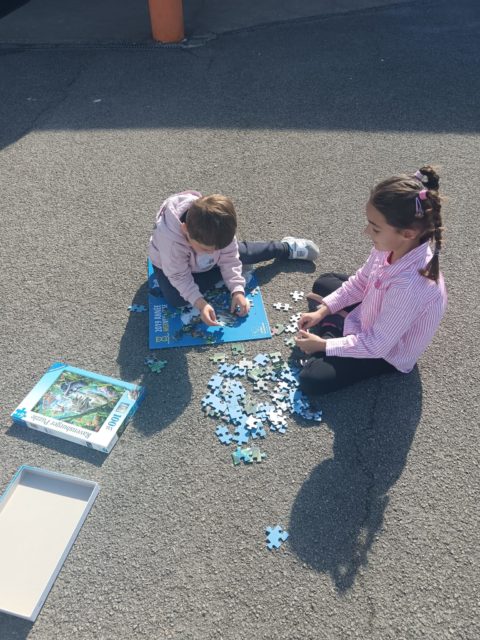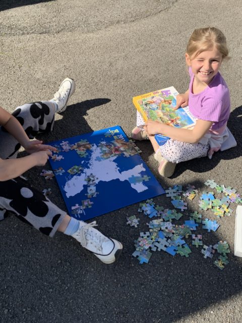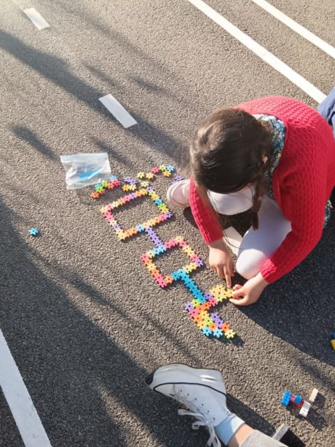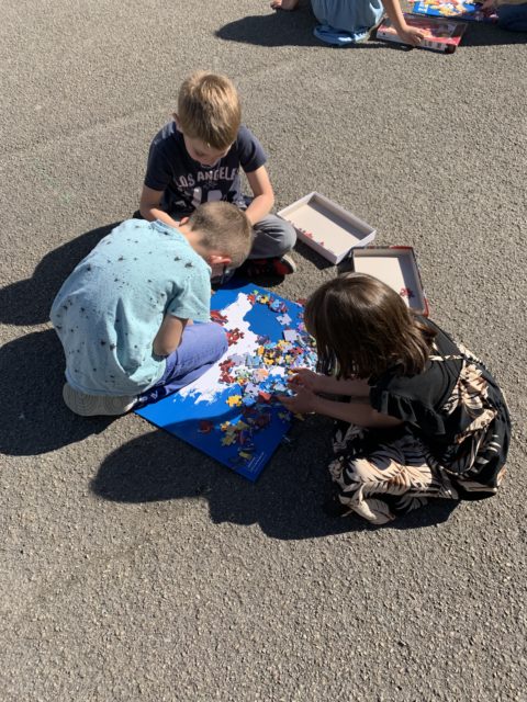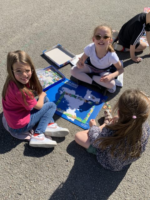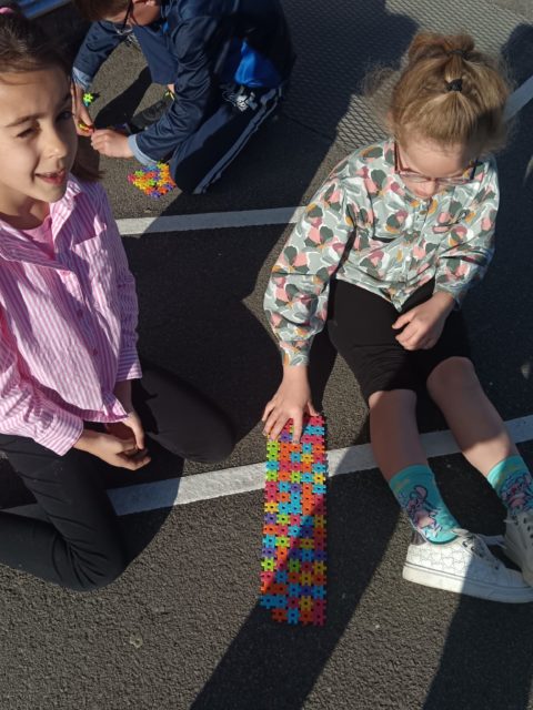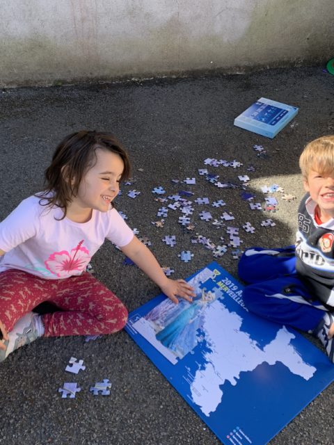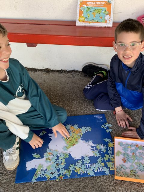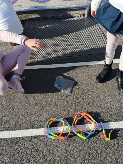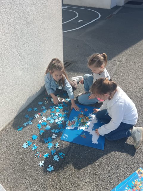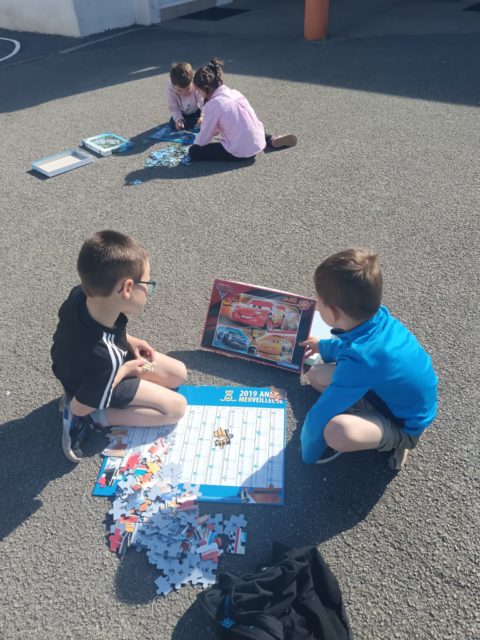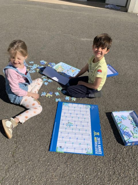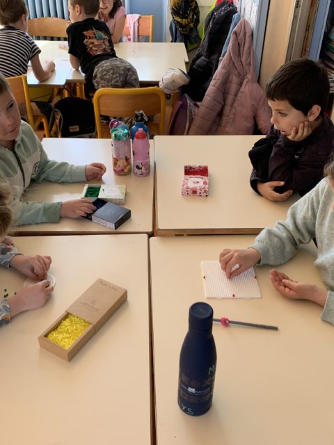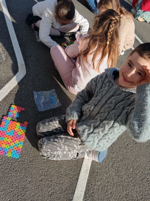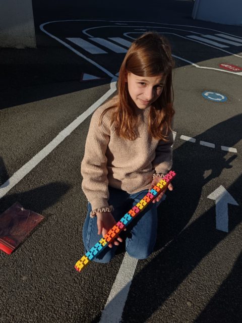 Les élèves ont également fait preuve de créativité en apportant de chez eux des réalisations autour du nombre 100 : puzzles de 100 pièces, collection de 100 cartes Pokémon, réalisation de 100 gommettes ou encore 100 cœurs avec « je t’aime » dans 100 langues différentes !